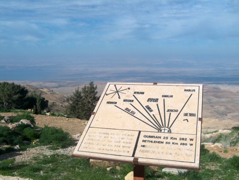 Onderweg stopte we tevens in Madaba bij de berg Nebo om daar te staan waar Mozes gestaan zou hebben. Vanaf daar is dan ook ‘het beloofde land’ te zien. Het zicht was goed, maar helaas niet goed genoeg om Jeruzalem te zien. Bij helder zicht zou je Israël, Palestijns gebied en zelfs Libanon goed te zien zijn.
