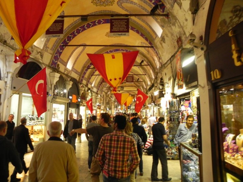Er stonden enorme rijen voor de moskee en ook bij het Topkapi paleis was de rij enorm. Hoewel de buitenkant er zeker mooi uitzag, waren we er ook niet echt rouwig om. We hadden immers al zoveel gezien. We kozen er voor om de drukte even te ontlopen en wat te lunchen. Ondertussen zag ik op de kaart dat de grote bazaar niet ver was.
