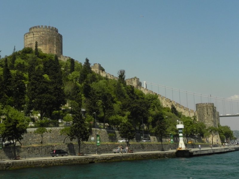 Langs de oevers hebben we verschillende gebouwen aanschouwd. Deze omvatten de Galata-toren, de oude stadsmuren van Istanboel en het Galatasaray Lesisi, een particuliere school voor de intellectuele. We zagen ook het Four-seasonshotel, de privépier voor de spelers van Galatasaray en diverse villa’s en houten huizen. Voor het duurste huis mag je wel tientallen miljoenen meenemen. Tevens zagen we in de verte nog Kiz Kulesi. Een eiland is herkenbaar doordat er een toren op is gebouwd. Ook bekend uit een tweetal James Bond-films, namelijk ‘The World is not Enough’ en ‘From Russia with Love’.
