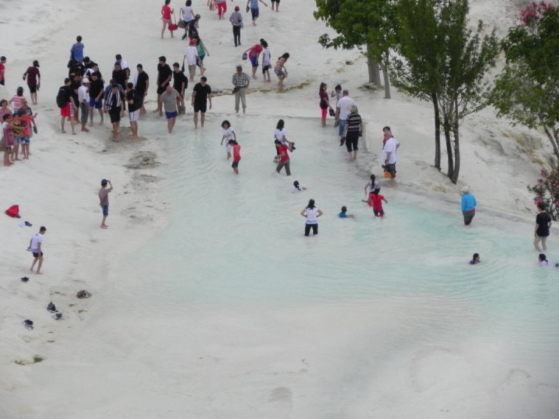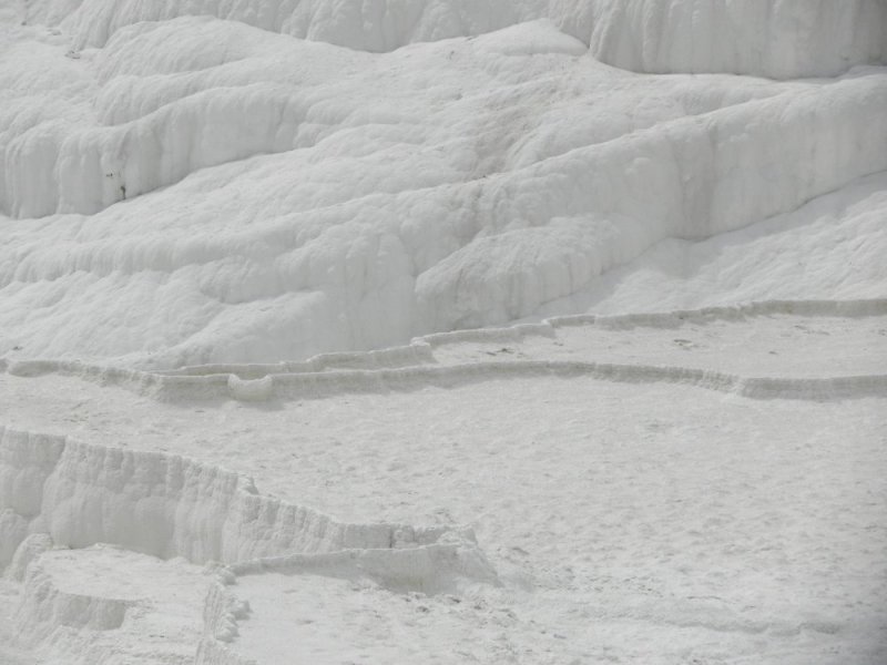 Dit verschijnsel staat genoteerd op de werelderfgoedlijst van Unesco en is zeker bijzonder. Door het warme water slaat calciumcarbonaat neer en zijn daar dikke pakketten kalk afgezet. Hierdoor lijkt het uit de verte alsof de heuvel is besneeuwd of bevroren. Hoewel het een bijzonder verschijnsel is, maakt het ook meteen een toeristenmagneet. Je mag via een pad over de kalk heen lopen met tussendoor een aantal baden met warm water. Dit voelt lekker aan, maar heeft ook een reden. De laag werd namelijk erg aangetast door de hoeveelheid toeristen. Door het water blijven de lagen behouden. Het water komt namelijk direct uit de grond en ondersteunt zo het proces van neerslaan van de kalk. Vergeet vooral niet om de schoenen uit te doen als je hier loopt. Je wordt anders teruggefloten.
