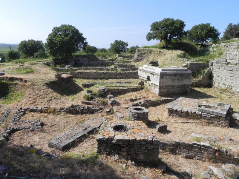 Deze stad was voor ons alleen interessant door een filmster. Het was namelijk het houten paard dat tijdens de film Troy (2004) is gebruikt. Niet lang daarna reden we door naar het archeologische deel van Troje. De opgravingen die grotendeels zijn gedaan, door de Duitser Heinrich Schliemann, lijken nu wat hopen steen. Met de nodige verbeelding kan je enigszins voorstellen hoe het grote Troje er uit zou hebben gezien. We mogen niet vergeten dat het land door de eeuwen heen is verhoogd. Daarom heeft de zee zich terug moeten trekken. Ooit had Troje zicht op zee, maar nu ligt daar 6 km land tussen.