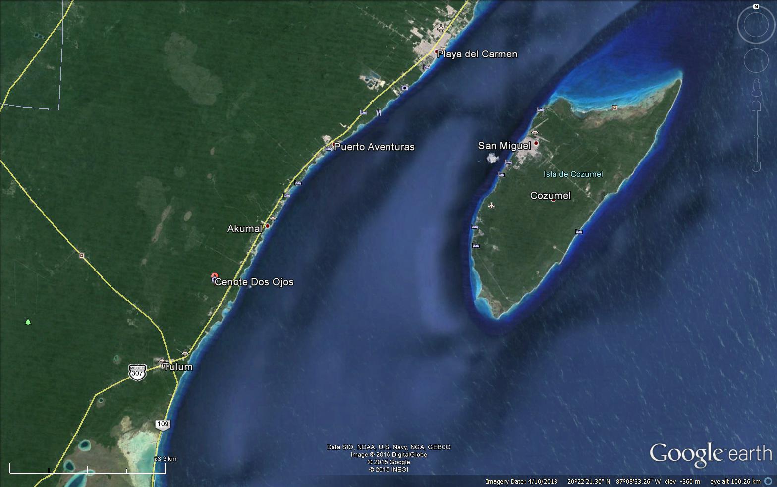 Een aantal jaren verder was ik voor een vakantie in Yucatan, Mexico. Dit gebied staat bekend als het gebied waarbij ondergrondse rivieren stromen en hele grottenstelsels bestaan. Daar is een deel van te bezoeken. Dos Ojos staat bekend als één van de beter toegankelijke en mooiste onderwaterplekjes.