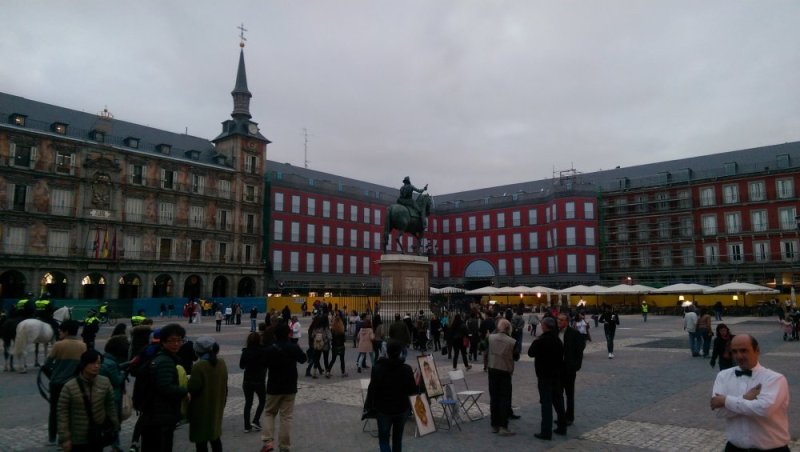 Direct na het inchecken en het dakterras te hebben bezocht, was het tijd om de omgeving te verkennen. De wandeling liep over Plaza Mayor en Sol. Twee grote pleinen dicht bij elkaar.