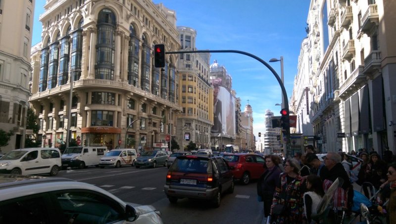 Na een korte break was het tijd. We brachten een bezoek aan één van de drukste delen van de stad, Grand Via. Deze hoofdweg en tevens winkelstraat is heel populair en dat was te merken. Alle grote wereldketens zijn hier wel te vinden. Het is goed te vergelijken met Broadway in onder andere New York. Zo zijn er ook theaters en hotels te vinden.