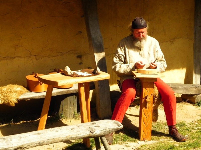 Uiteraard lopen er een aantal ‘Vikingen’ en is er een leuke shop. De Vikingen zijn bezig met hout- en snijwerk en maken sieraden. Het geeft een beeld van hoe de Vikingen leefde in dit deel van Denemarken.