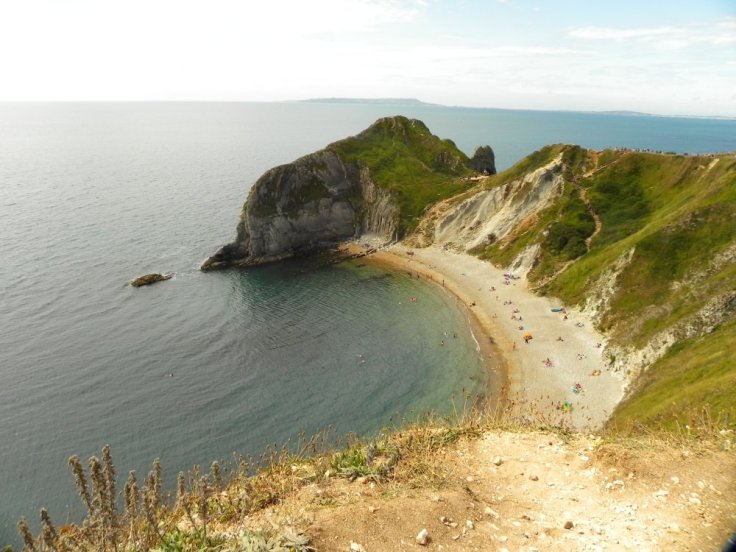 Het strand bij de Durdle Door bestaat voornamelijk uit kiezelstenen. Horde mensen komen dagelijks bij dit strand en bij het naastgelegen Man O’ war beach. Laatst genoemde is een stuk rustiger. Families met koffers en kinderwagens wagen de afdaling en later ook weer de steile klim. Wij vragen ons zelf af.. Waarom?