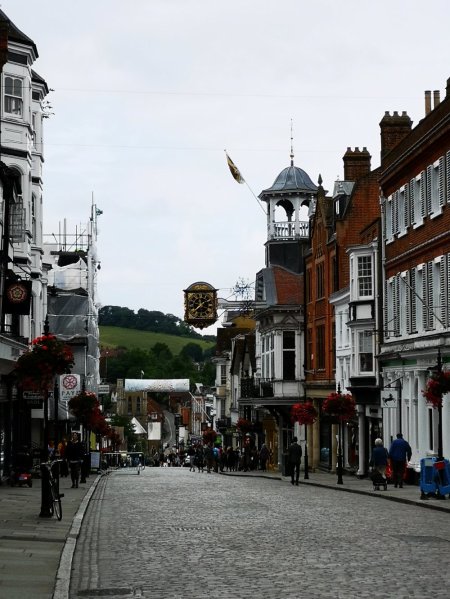 Onze eerste kennismaking met de omgeving was de stad Guildford. We hadden nog een kasteel tegoed en wilde nog wat winkels bezoeken. Deze stad heeft beide te bieden.