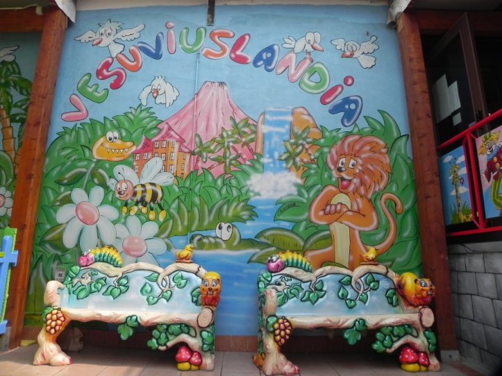 Even buiten Napels ligt het dorpje San Sebastiano Al Vesuvio. Daar ligt Vesuviuslandia. Een pretpark voor peuters en kleuters onder de rook van de oude Vesuvius.