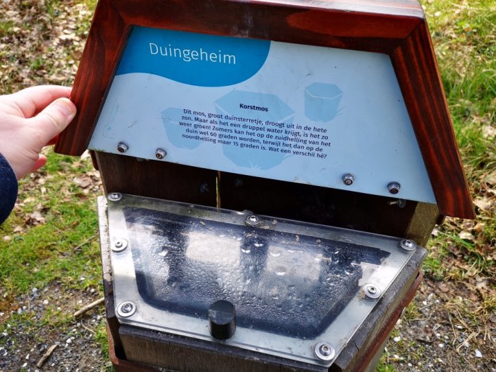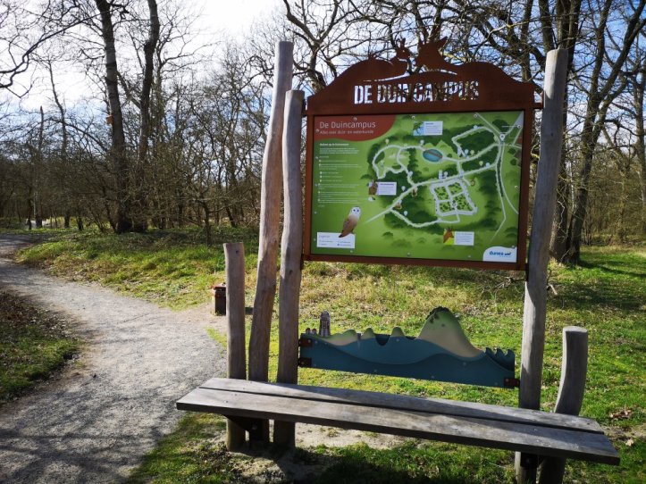 Aan de andere kant van het bezoekerscentrum is de Duincampus. Daar leren kinderen via een speurtocht over de geschiedenis van het duin, de natuur en het water. Aangezien de speurtocht alleen opgehaald kon worden in het bezoekerscentrum was het vandaag even improviseren. Maar met een beetje kennis komen we een heel eind.