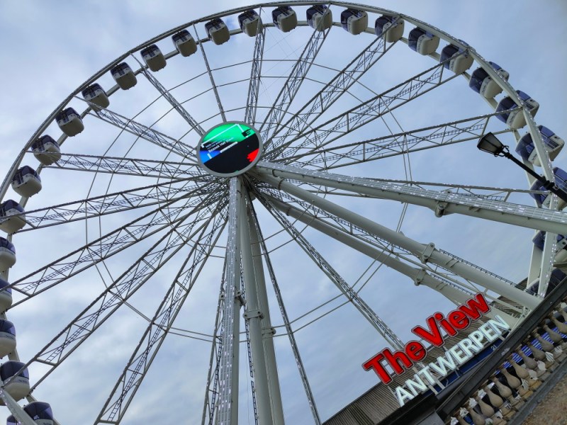 Aan de Schelde vind je ook Het Steen waar Lange Wapper nog vier staat te kijken over de bezoekers van Het Steen. Sinds 2015 is er een groot reuzenrad te vinden. Net zoals in London en Scheveningen. Wij hadden wel zin om even te zitten en te genieten van het uitzicht. Eenmaal in rij bleek helaas dat het rad technische problemen had. Ons ritje in het reuzenrad ging helaas niet door.