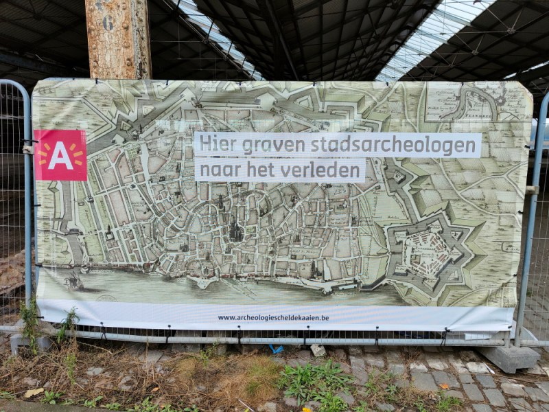 Net als vorig keer hebben we een wandeling gemaakt langs de Schelde. De rivier die uitkomt in ons Nederlandse Zeeland. Langs de Schelde vind je op dit moment een groot gedeelte waar wordt gebouwd. Daar zijn echter ook archeologische bevindingen gedaan en zichtbaar gemaakt. Je ziet oude muren van huizen in Antwerpen uit een ver verleden.