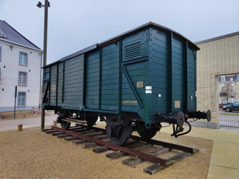 Naast het museum vind je een rijtuig. Mensen werden hierin afgevoerd naar de diverse kampen. Je kan naar de binnenplaats van kazerne Dossin. Tegenwoordig zit daar het stadsarchief en zijn er appartementen gevestigd.