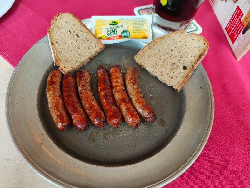 We hebben ook nog genoten van de typische Neurenbergs bratwurst met brood. Een simpel gerecht met een aantal worstjes van kleiner formaat.