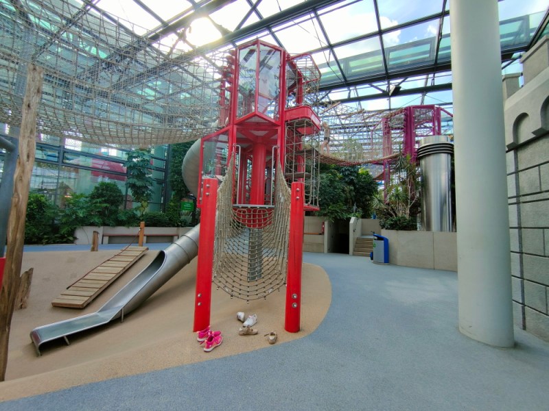Er is ook een groot binnenspeeltuin. Er is een enorme hal waar kinderen kunnen spelen met Playmobil speelgoed. Dit speelgoed is op dit moment ook te koop.