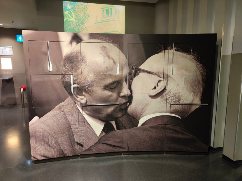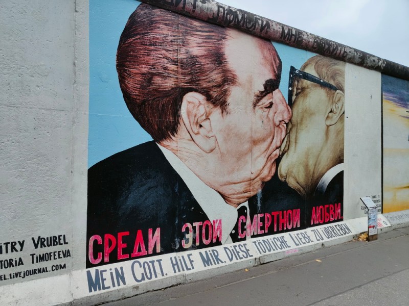 Een ander deel van de Berlijnse muur is te zien bij de zogehete East Side Gallery. Stukken muur zijn hier versierd door kunstenaars. Sommige schilderingen hebben een politieke boodschap met aantal zeer bekende uitingen. De schildering van de zoenende Leonid Brezhnev en Erich Honecker is wellicht het beroemste stuk.