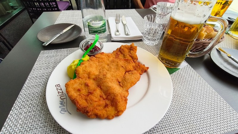Met een aankomsttijd van 18.10 uur hadden we nog genoeg tijd voor een biertje en goed avondeten. Onze voorkeur ging uit naar de Duitse keuken. Rondom dit deel van Frankfurt, ook wel het Bahnhofsviertel genoemd, zijn genoeg restaurants te vinden. Veelal met een turks of aziatische kaart. We vonden uiteindelijk een fantastische plek aan de rivier de Main. De schnitzels bij Main Nizza waren meer dan prima.