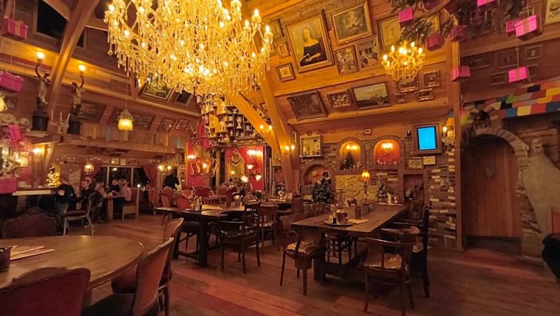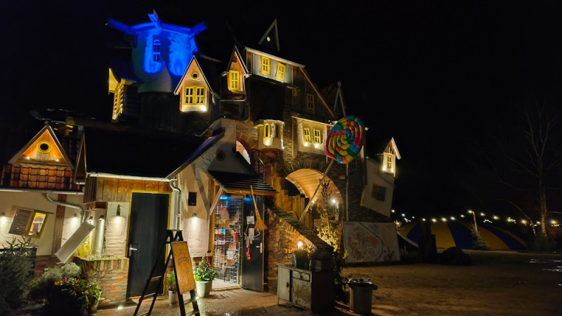 Tijdens ons bezoek was het erg modderig buiten. Binnen is het nog leuker met bewegende tafels, glijbanen en een douche midden in het restaurant. De kaart bestaat alleen uit diverse soort pannenkoeken en wat kindermenu-achtige snacks. Ongetwijfeld liggen er nog meer magische geheimen. Deze zullen we de volgende keer zeker ontdekken.