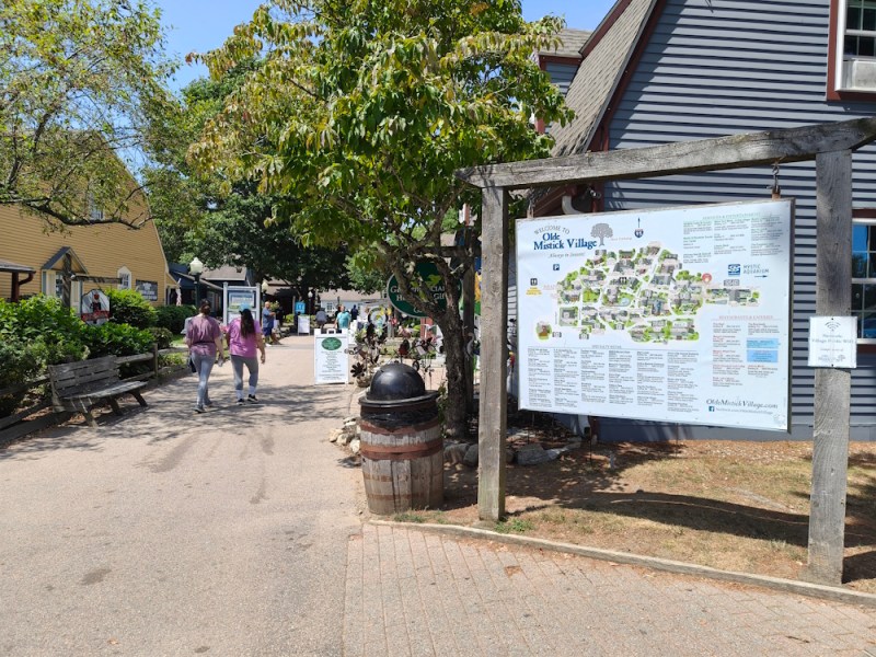 Naast het aquarium staat het Olde Mistick Village. Het is niet een dorp met een lange geschiedenis, want het bestaat sinds 1973. Het is opgezet met als doel om als een openlucht-winkelgebied te dienen. Het lijkt op een typisch dorpje uit New England.
